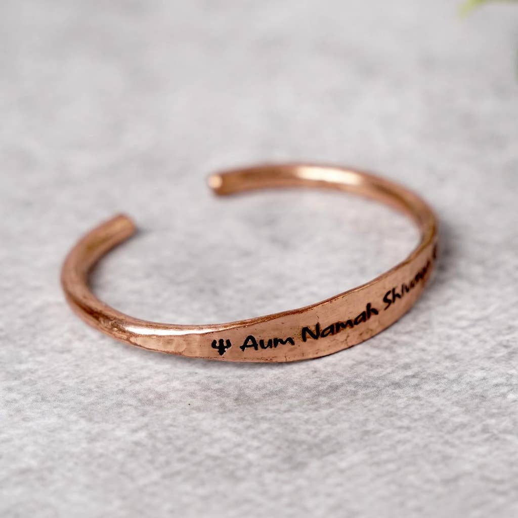 Be the first to review “Aum Namah Shivaya Adjustable Hammered Copper Cuff”