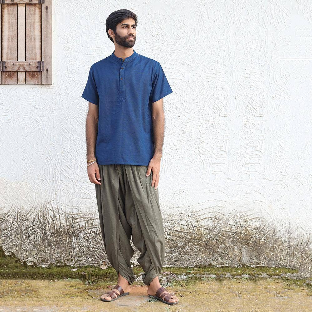 Organic Mens Aum kurta S/S Navy S