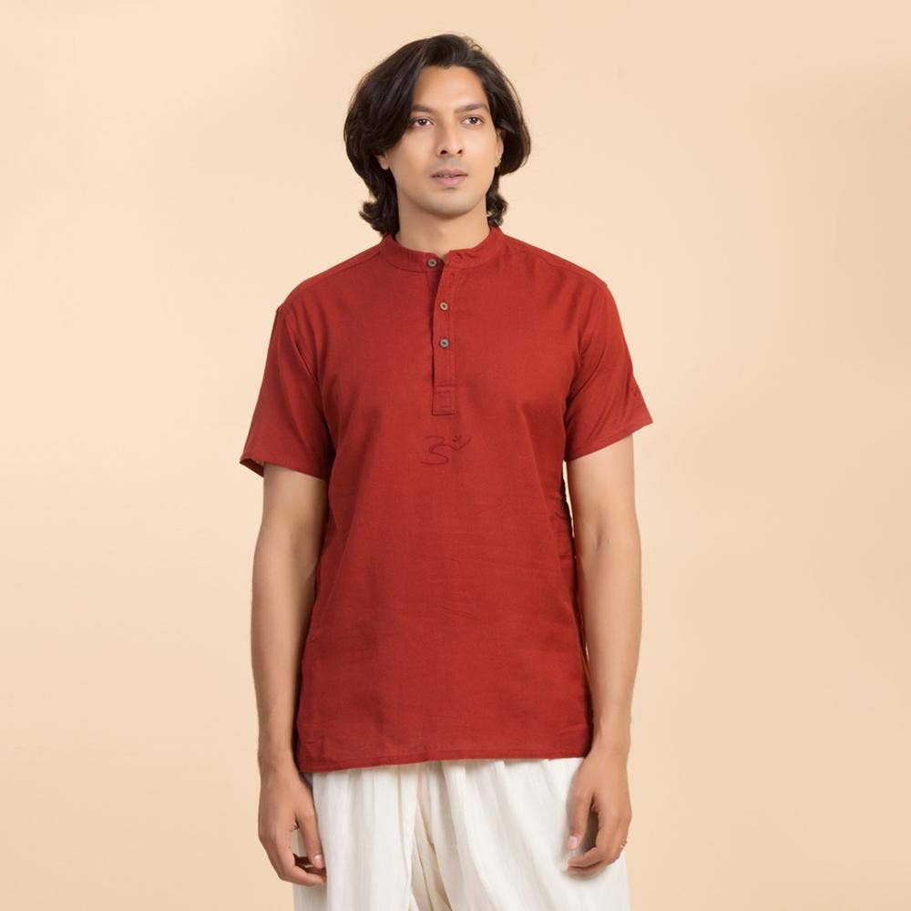 Organic Mens Om Kurta Maroon L